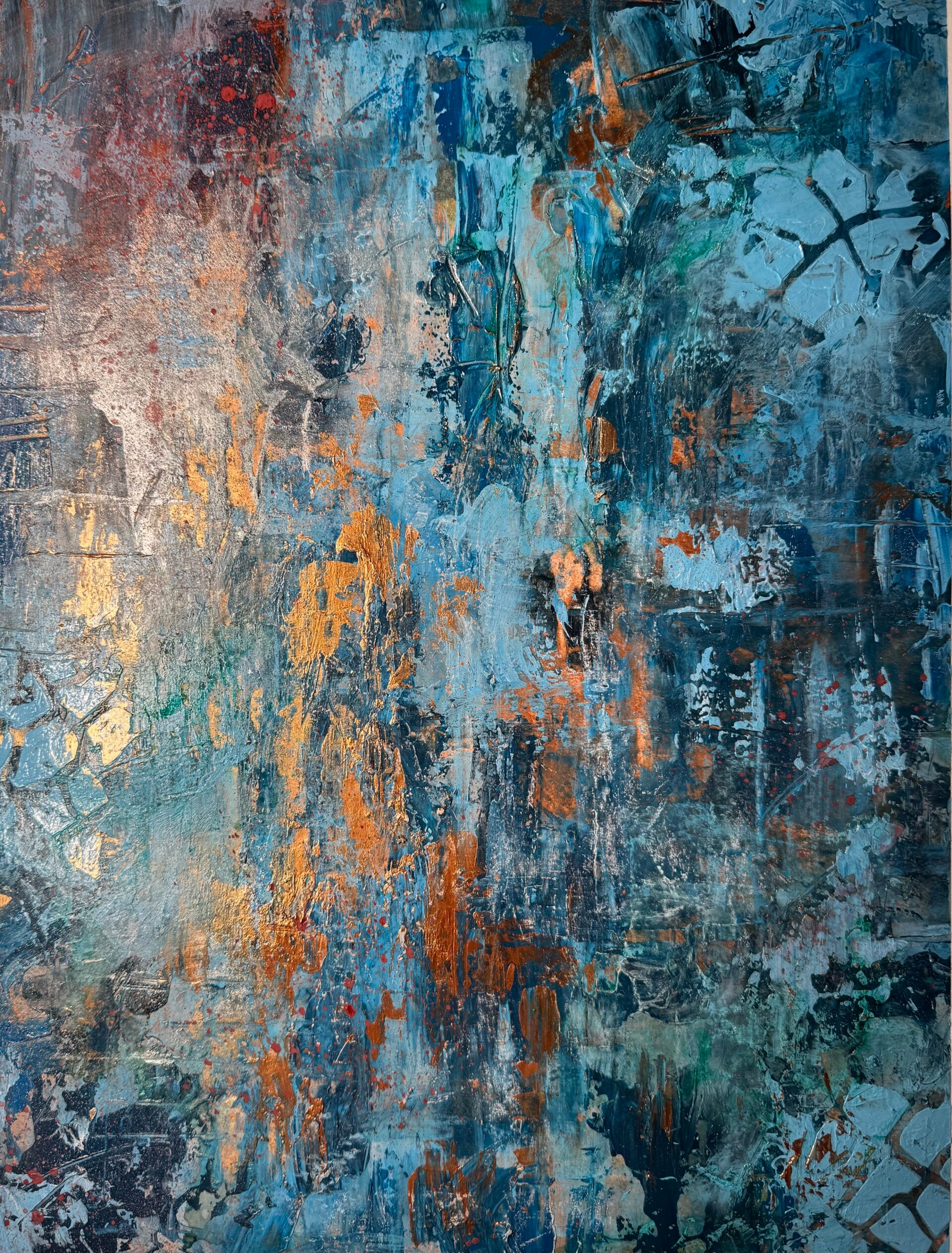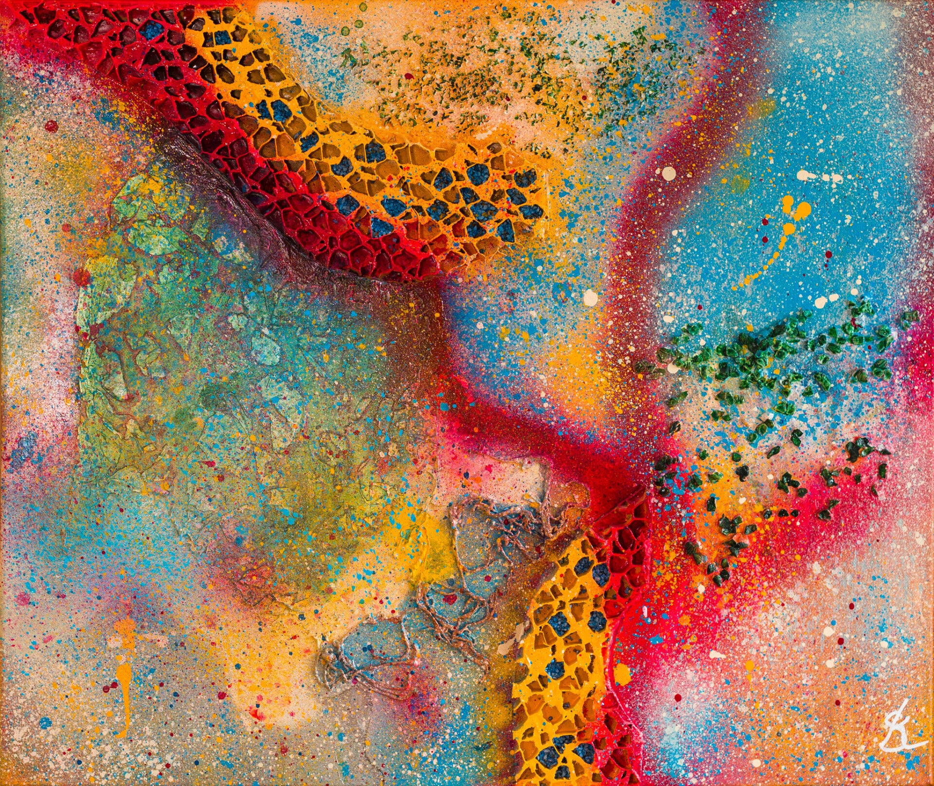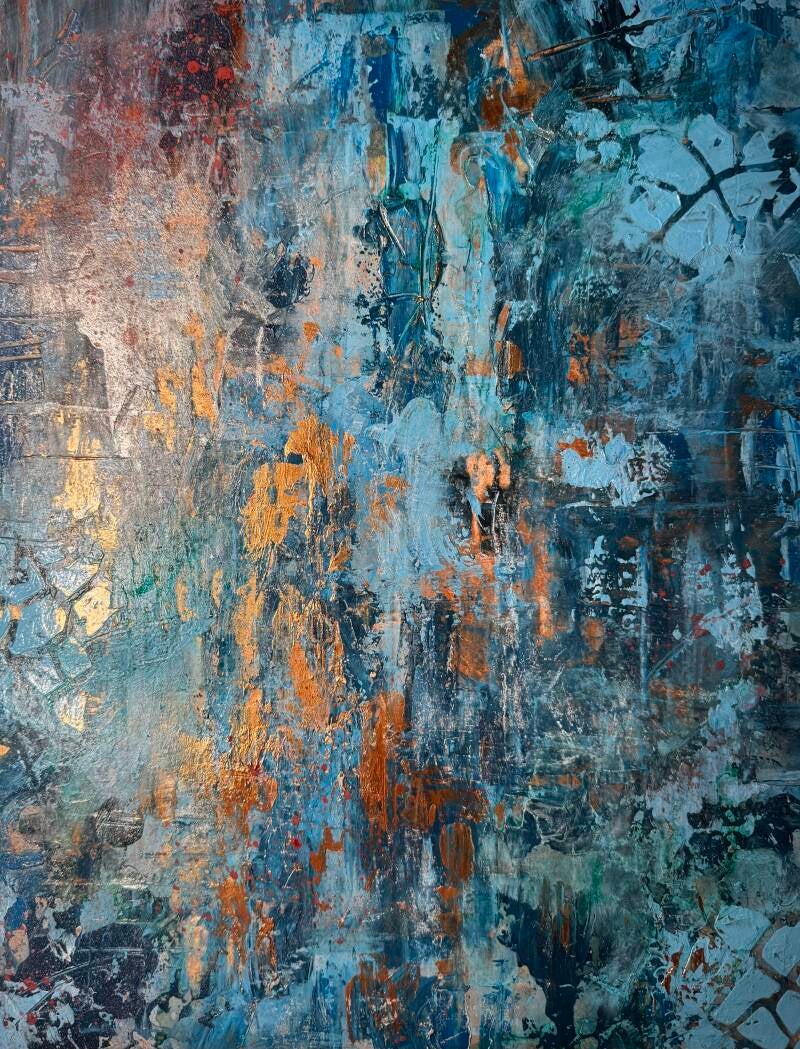 Ik denk dat kunst het spannendst is wanneer grenzen vervagen en materialen samenkomen. Hier ontdek je mijn mixed media werken, waar ik het plezier van experimenteren wil delen. Ik laat inkt druipen om beweging te vangen, verwerk stukken karton voor extra diepte en gebruik een spuitbus voor onverwachte effecten. Mijn handen, sponzen, paletmessen en stiften zijn allemaal instrumenten in dit creatieve proces.